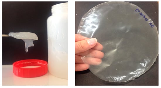 Firstly, a visual observation after the grinding process is shown in Figure 3. This picture clearly shows the gel-like structure and the transparency of the films obtained with the pretreatment done on the fibers.