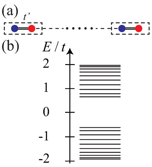 - Su, W.P.; Schrieffer, J.R.; Heeger, A.J. Solitons in polyacetylene. Phys. Rev. Lett. 1979, 42, 1698–1701. [Google Scholar] [CrossRef]
