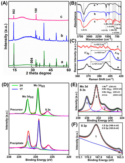 3.1. Preparation and Characterization of the MoS2 QDs and Precipitate Containing the Nanosheets