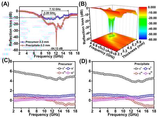3.3. Application of Precipitate Containing the Nanosheets in EMW Absorption