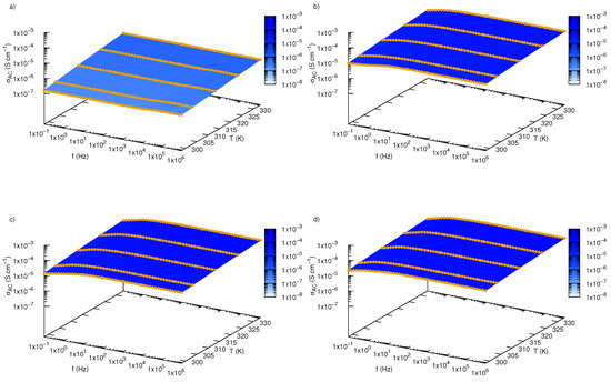 where t is thickness of sample, is direct current resistivity, designated as point of intersection impedance with axis Z’, S is area of sample. Values of DC conductivity calculated from Equation (2) were summarized in Table 2 and plotted in Figure 11a.
