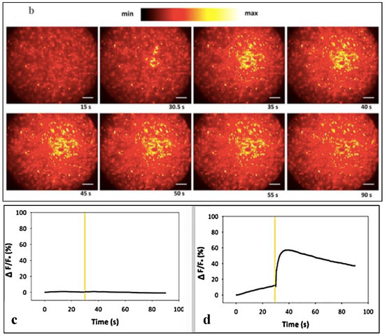 Experimental setup for cellular stimulation and calcium-sensitive dye imaging. Reproduced with permission from [33]. John Wiley and Sons, 2017.