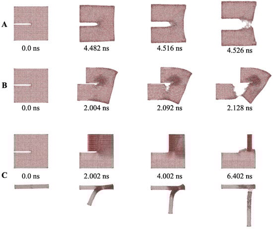- Bao, H.; Huang, Y.; Yang, Z.; Sun, Y.; Bai, Y.; Miao, Y.; Chu, P.K.; Xu, K.; Ma, F. Molecular Dynamics Simulation of Nanocrack Propagation in Single-Layer MoS2 Nanosheets. J. Phys. Chem. C 2018, 122, 1351–1360. [Google Scholar] [CrossRef]