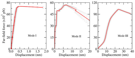 Recently, many researchers have used the classical Griffith’s theory to investigate the brittle fracture behaviour of different materials in order to estimate and [18,19,20,21,22,23,24,25,26,27,28]. Recently, several works were carried out in MD simulations to estimate and and to understand the effect of the crack depth on the onset of crack, whereas comparisons with Griffith’s theory were carried out [22,50,51,52,53,54]. These studies provided two significant conclusions; First, for extremely small size crack, Griffith’s theory of fracture becomes inapplicable, and second, LEFM only can be used when the crack depth is at least four times of the material’s lattice constant.