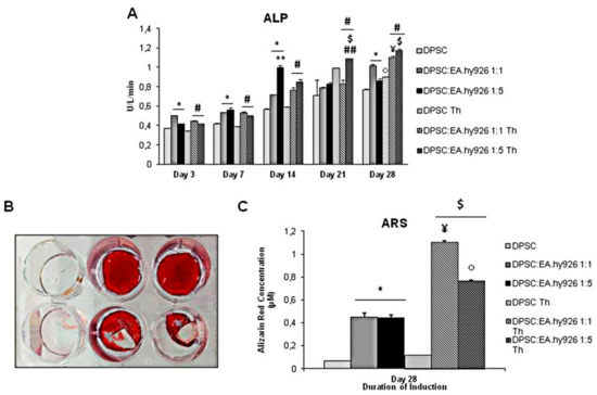 - Prins, H.J.; Braat, A.K.; Gawlitta, D.; Dhert, W.J.; Egan, D.A.; Tijssen-Slump, E.; Yuan, H.; Coffer, P.J.; Rozemuller, H.; Martens, A.C. In vitro induction of alkaline phosphatase levels predicts in vivo bone forming capacity of human bone marrow stromal cells. Stem Cell Res. 2014, 12, 428–440. [Google Scholar] [CrossRef]