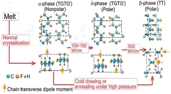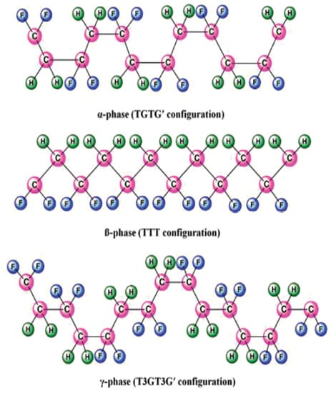 Primary polymorphic crystalline phases of PVDF. Reproduced with permission from [50], published by Wiley-VCH, 2019.