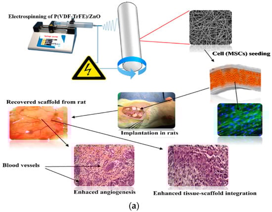 - Augustine, R.; Dan, P.; Sosnik, A.; Kalarikkal, N.; Tran, N.; Vincent, B.; Thomas, S.; Menu, P.; Rouxel, D. Electrospun poly(vinylidene fluoride-trifluoroethylene)/zinc oxide nanocomposite tissue engineering scaffolds with enhanced cell adhesion and blood vessel formation. Nano Res. 2017, 10, 3358–3376. [Google Scholar] [CrossRef]