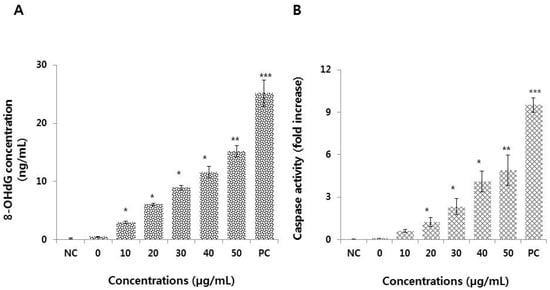 8-oxo-dG and its analogs were used as biomarkers of oxidative DNA damage and oxidative stress. To evaluate graphene oxide-induced oxidative stress in HEK293 cells, an 8-oxo-dG ELISA assay was utilized as previously described [30] and following the manufacturer’s instructions (Trevigen, Gaithersburg, MD, USA).