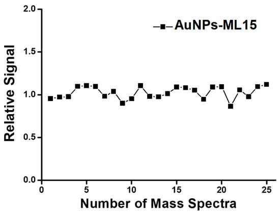 The relative signal of glucose was measured and calculated with the sample substrate of AuNPs-ML-15 in SALDI-MS.