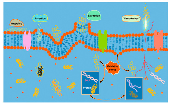 Mechanisms of the antimicrobial activities of graphene-based materials. Reprinted with permission from [57]. Copyright American Chemical Society, 2016.