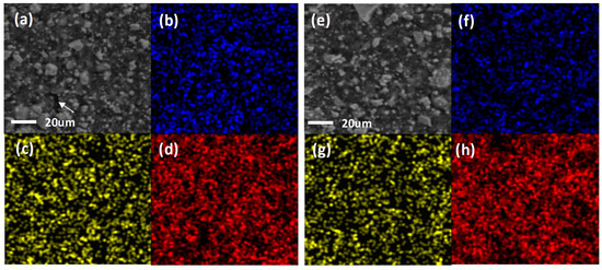 The active materials, prepared as described above, were characterized by powder X-ray diffractometry (XRD, Philips X’Pert-MPD, Malvern, UK) with Cu Kα radiation in the 5–80° 2ϴ range at a constant step angle and step size of 0.013° and 97.92 s, respectively. Scanning electron microscopy (SEM, Hitachi S3500N, Krefeld, Germany) was used to examine the surface morphologies, and SEM augmented with energy-dispersive X-ray spectroscopy (EDS, Hitachi S3500N, Krefeld, Germany) was used to create elemental maps that confirmed the homogeneous nature of the cast dispersion of the active material, as well as the approximate local Sb, Te, and C contents of the SbTe-C20, SbTe-C30, and SbTe-C40 composites.