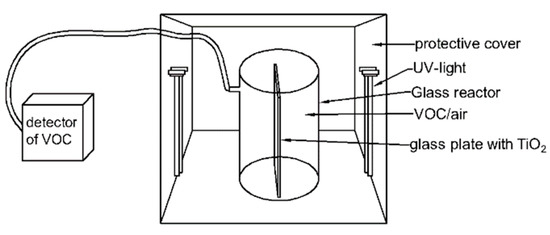 - Shayegan, Z.; Lee, C.S.; Haghighat, F. TiO2 Photocatalyst for Removal of Volatile Organic Compounds in Gas Phase–A Review. Chem. Eng. J. 2018, 334, 2408–2439. [Google Scholar] [CrossRef]