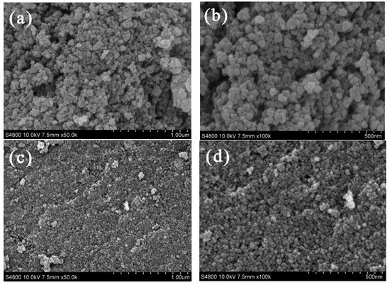 Because of its high chemical stability and high photocatalytic activity, nano-TiO2 has great development prospects in the fields of environmental protection [1], such as in photocatalytic disinfection, antibacterial use [2,3], wastewater treatment [4], air purification [5], and so on. Especially in the face of the current difficulty of eliminating volatile organic compound (VOC) pollution in the air, TiO2 photocatalysis technology has shown unique advantages [6,7]. However, the preparation cost of nano-TiO2 is high, and the process is difficult to control, meaning that nano-TiO2 has poor dispersion and a wide particle-size distribution. Moreover, the photocatalytic performance restricts its development and application: firstly, the band gap of 3.2 eV limits it to using only ultraviolet light below 387.5 nm in wavelength [8]. Secondly, the electron and hole produced by the light excitation of TiO2 recombine very easily [9,10]. Therefore, developing preparation technology of TiO2 with good dispersion and a uniform particle size and exploring a way to broaden the light response range and inhibit the electron and hole recombination of TiO2 are the key problems which need to be solved urgently in order to develop the commercialization and advanced application of nano-TiO2.