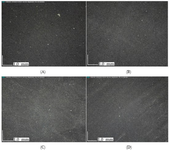 Magnified digital images of electrodes after operation at (A) 100 ppm, (B) 2000 ppm, (C) 15,000 ppm, (D) 30,000 ppm, showing an intact arrangement on the titanium current collector plate. No significant accumulation of sodium crystals on the surface were found. Magnification: 50×.