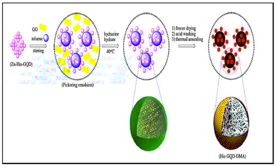 Preparation of the His-GQDs-GMA nanocomposite (Reproduced from [97], copyright Elsevier, 2017).