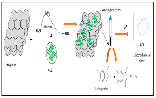 - Tashkhourian, J.; Nami-Ana, S.F.; Shamsipur, M. Designing a modified electrode based on graphene quantum dot-chitosan application to electrochemical detection of epinephrine. J. Mol. Liq. 2018, 266, 548–556. [Google Scholar] [CrossRef]