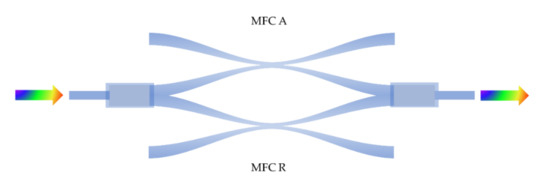 The schematic diagram of Mach–Zehnder interferometer (MZI) made by two MFCs.