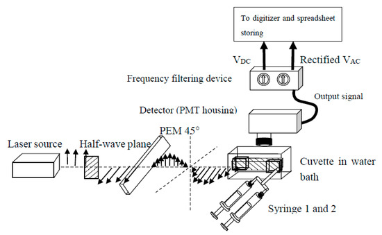 - Wampler, J.E.; DeSa, R.J. Recording Polarization of Fluorescence Spectrometer—A Unique Application of Piezoelectric Birefringence Modulation. Anal. Chem. 1974, 46, 563–567. [Google Scholar] [CrossRef]