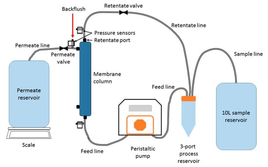 Schematic depiction of the experimental setup used for step one of the two-step preconcentration process for virus recovery from fresh and wastewater samples. (Re-printed from Farkas et al. [67]. Copyright (2018), with permission from MDPI AG).