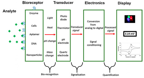 Standard components of a biosensing device. (Re-printed from Bhalla et al. [89]. Copyright (2016)).