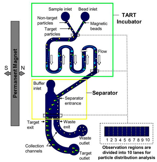 - Zhou, Y.; Wang, Y.; Lin, Q. A microfluidic device for continuous-flow magnetically controlled capture and isolation of microparticles. J. Microelectromechanical Syst. 2010, 19, 743–751. [Google Scholar] [CrossRef]