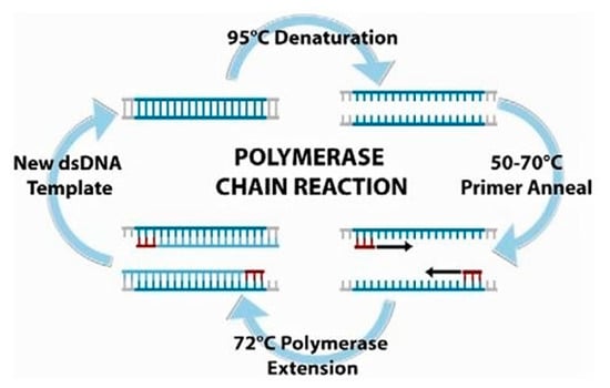 - Mullis, K.; Faloona, F.; Scharf, S.; Saiki, R.; Horn, G.; Erlich, H. Specific enzymatic amplification of DNA in vitro: The polymerase chain reaction. Cold Spring Harb. Symp. Quant. Biol. 1986, 51, 263–273. [Google Scholar] [CrossRef] [PubMed]