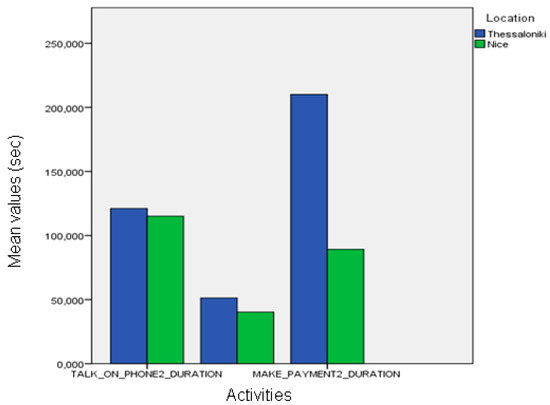 In the following table (Table 4), the statistical analysis (ANOVA, multiple comparisons) based on the CAR analysis is presented. From the CAR activity report, the analysis showed the statistically significance differences between the MCI and AD participants in the following protocol activities: (1) Make payment duration and (2) Talk on the phone duration.