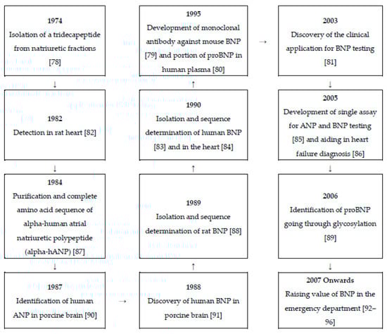 Timeline of the research developments on natriuretic peptides [,,,,,,,,,,,,,,,,,,].