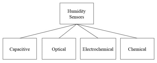 As water constitutes the largest portion of human saliva (98.5%), humidity sensors can be used to detect the presence of saliva on a surface. Figure 8 shows the working principles of the humidity sensors, which include capacitive, optical, electrochemical, and chemical. The remainder of this section describes sensors in these different categories.