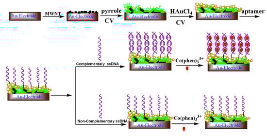 - Liu, X.; Cheng, Z.; Fan, H.; Ai, S.; Han, R. Electrochemical detection of avian influenza virus H5N1 gene sequence using a DNA aptamer immobilized onto a hybrid nanomaterial-modified electrode. Electrochim. Acta 2011, 56, 6266–6270. [Google Scholar] [CrossRef]