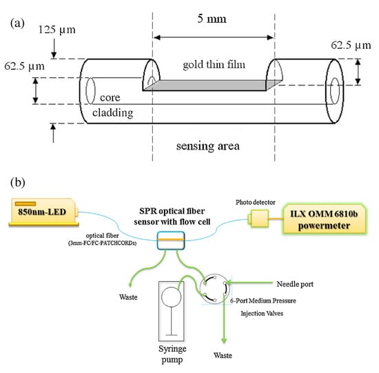 - Zhao, X.; Tsao, Y.C.; Lee, F.J.; Tsai, W.H.; Wang, C.H.; Chuang, T.L.; Wu, M.S.; Lin, C.W. Optical fiber sensor based on surface plasmon resonance for rapid detection of avian influenza virus subtype H6: Initial studies. J. Virol. Methods 2016, 233, 15–22. [Google Scholar] [CrossRef]