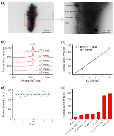 - Wang, J.F.; Wu, X.J.; Wang, C.W.; Rong, Z.; Ding, H.M.; Li, H.; Li, S.H.; Shao, N.S.; Dong, P.T.; Xiao, R.; et al. Facile synthesis of au-coated magnetic nanoparticles and their application in bacteria detection via a sers method. ACS Appl. Mater. Interfaces 2016, 8, 19958–19967. [Google Scholar] [CrossRef]
