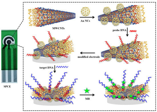 Schematic representation of the SPCE electrochemical DNA biosensor to detect lncRNA biomarker MALAT1. Reprinted from ref. [40].