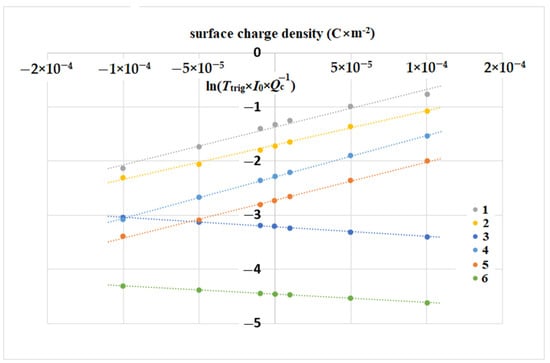 In accordance with the analytical expression (4), Figure 4 demonstrates the linear dependences of the values on the surface charge density.