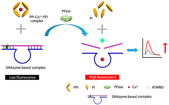 Schematic representation of the designed substrate/DNAzyme-based biosensor for the fluorescent detection of PPase.