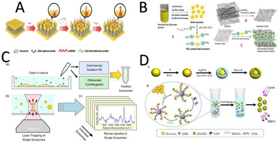 - Ning, C.-F.; Wang, L.; Tian, Y.-F.; Yin, B.-C.; Ye, B.-C. Multiple and sensitive SERS detection of cancer-related exosomes based on gold–silver bimetallic nanotrepangs. Analyst 2020, 145, 2795–2804. [Google Scholar] [CrossRef]