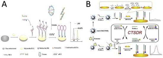 - Cao, Y.; Li, L.; Han, B.; Wang, Y.; Dai, Y.; Zhao, J. A catalytic molecule machine-driven biosensing method for amplified electrochemical detection of exosomes. Biosens. Bioelectron. 2019, 141, 111397. [Google Scholar] [CrossRef] [PubMed]