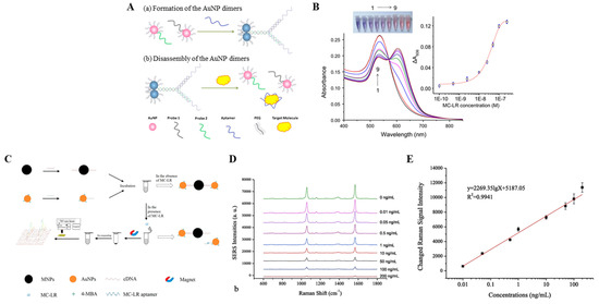 - He, D.; Wu, Z.; Cui, B.; Jin, Z. A novel SERS-based aptasensor for ultrasensitive sensing of microcystin-LR. Food Chem. 2019, 278, 197–202. [Google Scholar] [CrossRef] [PubMed]