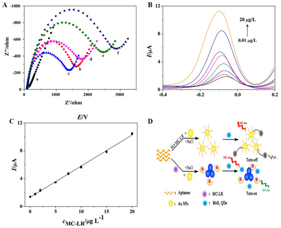 - Zhang, Y.; Chen, M.; Li, H.; Yan, F.; Pang, P.; Wang, H.; Wu, Z.; Yang, W. A molybdenum disulfide/gold nanorod composite-based electrochemical immunosensor for sensitive and quantitative detection of microcystin-LR in environmental samples. Sens. Actuators B Chem. 2017, 244, 606–615. [Google Scholar] [CrossRef]