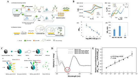 - Shi, Y.; Wu, J.; Sun, Y.; Zhang, Y.; Wen, Z.; Dai, H.; Wang, H.; Li, Z. A graphene oxide based biosensor for microcystins detection by fluorescence resonance energy transfer. Biosens. Bioelectron. 2012, 38, 31–36. [Google Scholar] [CrossRef] [PubMed]