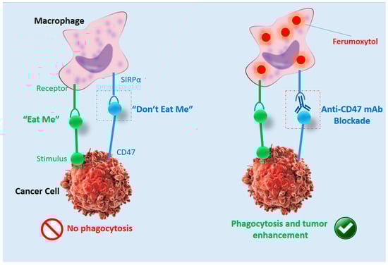 Schematic illustration of ferumoxytol-MRI as an imaging approach for CD47 immunotherapy, reproduced from [].