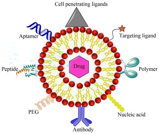 Hypothetical representation of liposome used for multiple targeting strategies in cancer.