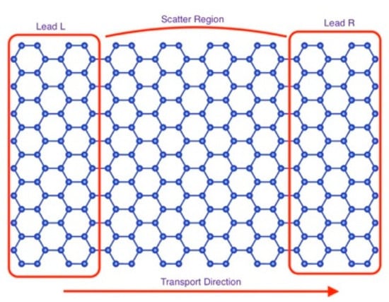 - Brandbyge, M.; Mozos, J.L.; Ordejón, P.; Taylor, J.; Stokbro, K. Density-functional method for nonequilibrium electron transport. Phys. Rev. B 2002, 65, 165401. [Google Scholar] [CrossRef]