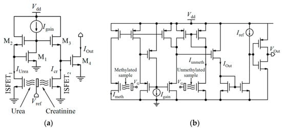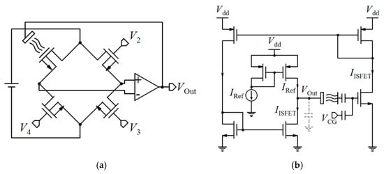- Chodavarapu, V.; Titus, A.; Cartwright, A. Differential read-out architecture for CMOS ISFET microsystems. Electron. Lett. 2005, 41, 698–699. [Google Scholar] [CrossRef]