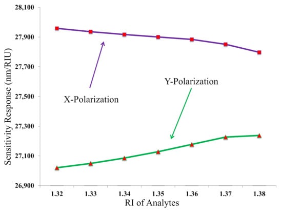 The sensitivity response with respect to RI of analytes for X- and Y-polarizations.