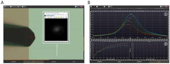 Illustration of the automatic optical sensing measurement system using our developed software program. (A) Optical alignment of the ball-lensed optical fiber (BLOF) through monitoring of the optical signal intensity. (B) Biosensor measurement of the shift in resonant wavelengths in a given time (0–20 min).
