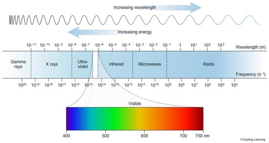 - Sapling Learning. Electromagnetic Spectrum. Available online: https://sites.google.com/site/chempendix/em-spectrum (accessed on 13 June 2020).
