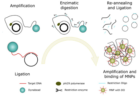 - Ali, M.M.; Li, F.; Zhang, Z.; Zhang, K.; Kang, D.K.; Ankrum, J.A.; Le, X.C.; Zhao, W. Rolling circle amplification: A versatile tool for chemical biology, materials science and medicine. Chem. Soc. Rev. 2014, 43, 3324–3341. [Google Scholar] [CrossRef]