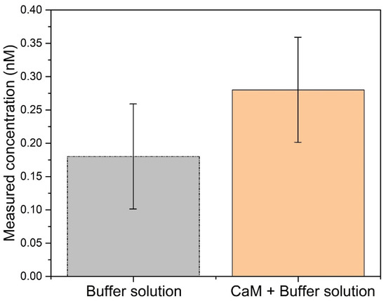 Measured concentrations using the TFBG functionalized with TRP immersed in buffer solution, in the presence or in the absence of CaM.