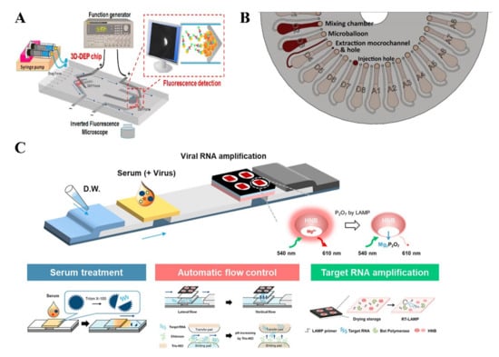 - Zhuang, J.; Yin, J.; Lv, S.; Wang, B.; Mu, Y. Advanced “lab-on-a-chip” to detect viruses—Current challenges and future perspectives. Biosens. Bioelectron. 2020, 163, 112291. [Google Scholar] [CrossRef]